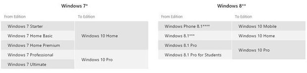 Владельцы лицензионных копий Windows 7 или Windows 8 могут обновиться до Windows 10 бесплатно. Сделать это нужно до 29 июля 2016 года. Для всех остальных цена Home-версии — 119 долларов США. При этом многие пользователи пиратских версий ОС сообщают, что им также удалось обновиться. Однако есть и те, кто не смог это сделать. Тут уж как повезет.