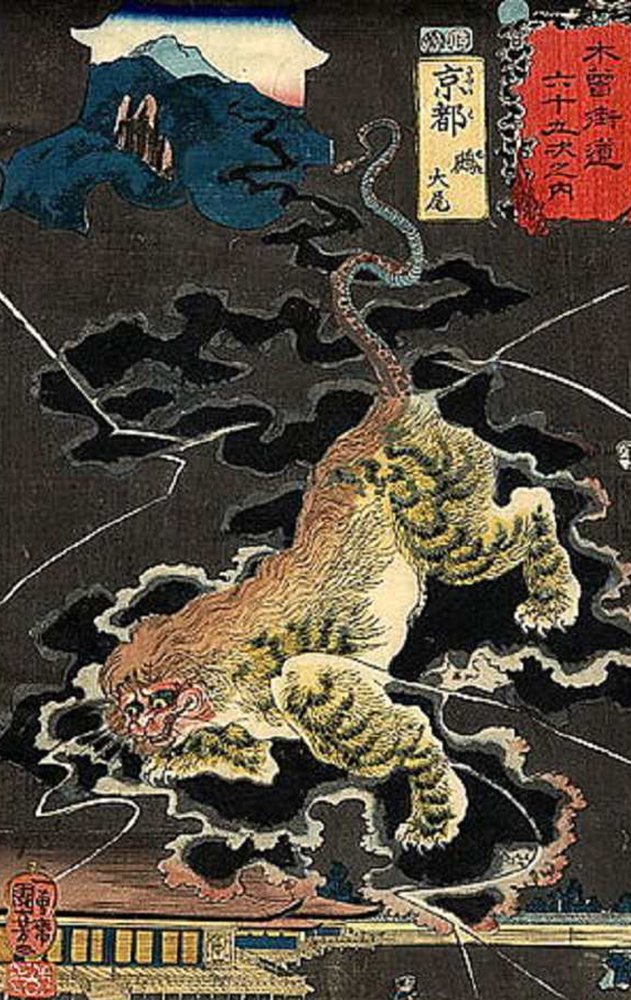Фантастический зверь с головой обезьяны, телом тануки, лапами тигра и со змеей вместо хвоста. Говоря короче – японский вариант химеры. Что забавно, зверя этого часто называют «птицей нуэ», а все из-за того, что кричит он точно как дрозд-нуэ.