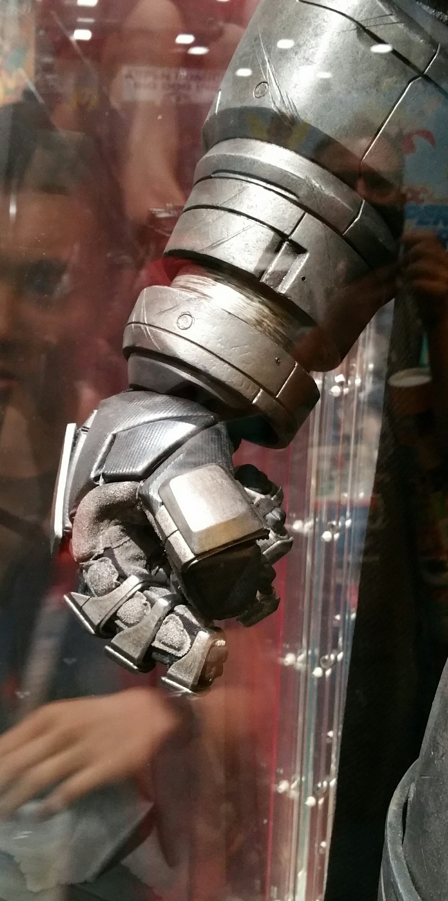 А вот шлем со стенда с игрушками под названием «шлем с модулятором голоса». Он уже точно — часть брони для битвы с Суперменом. Возможно, название характерно чисто для игрушки, но из него можно предположить, что Бэтмен будет говорить своим робо-голосом только в этой броне, а не в обычном костюме. Если так, это несколько расстраивает. Робо-голос вышел потрясно, а слушать еще один рычащий бэт-граул а-ля Бэйл не хочется.
