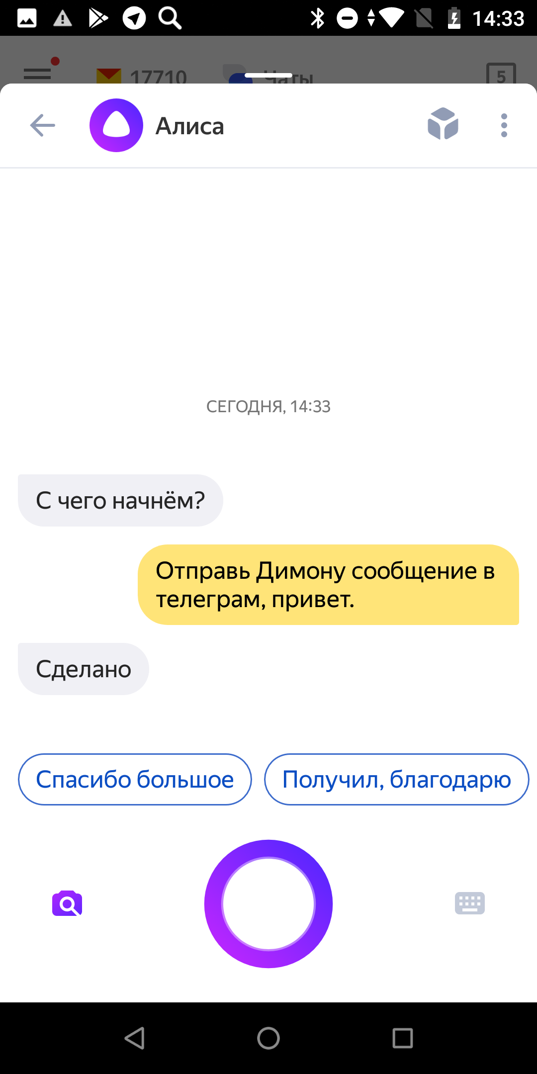 А вот здесь подводит уже Алиса. Siri и Ассистент отправляют сообщения, Алиса отшучивается. Никому она ничего, конечно, не передала. Скорее всего, это связано с тем, что и Сири, и Google Ассистент — нативные помощники для своих систем, тогда как Алиса — стороннее приложение.