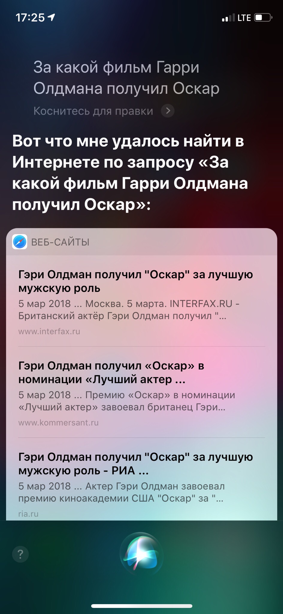 Ответил лишь Google Ассистент. Алиса выдала список ссылок из «Яндекса», а Сири вообще не поняла, чего от нее хотят.