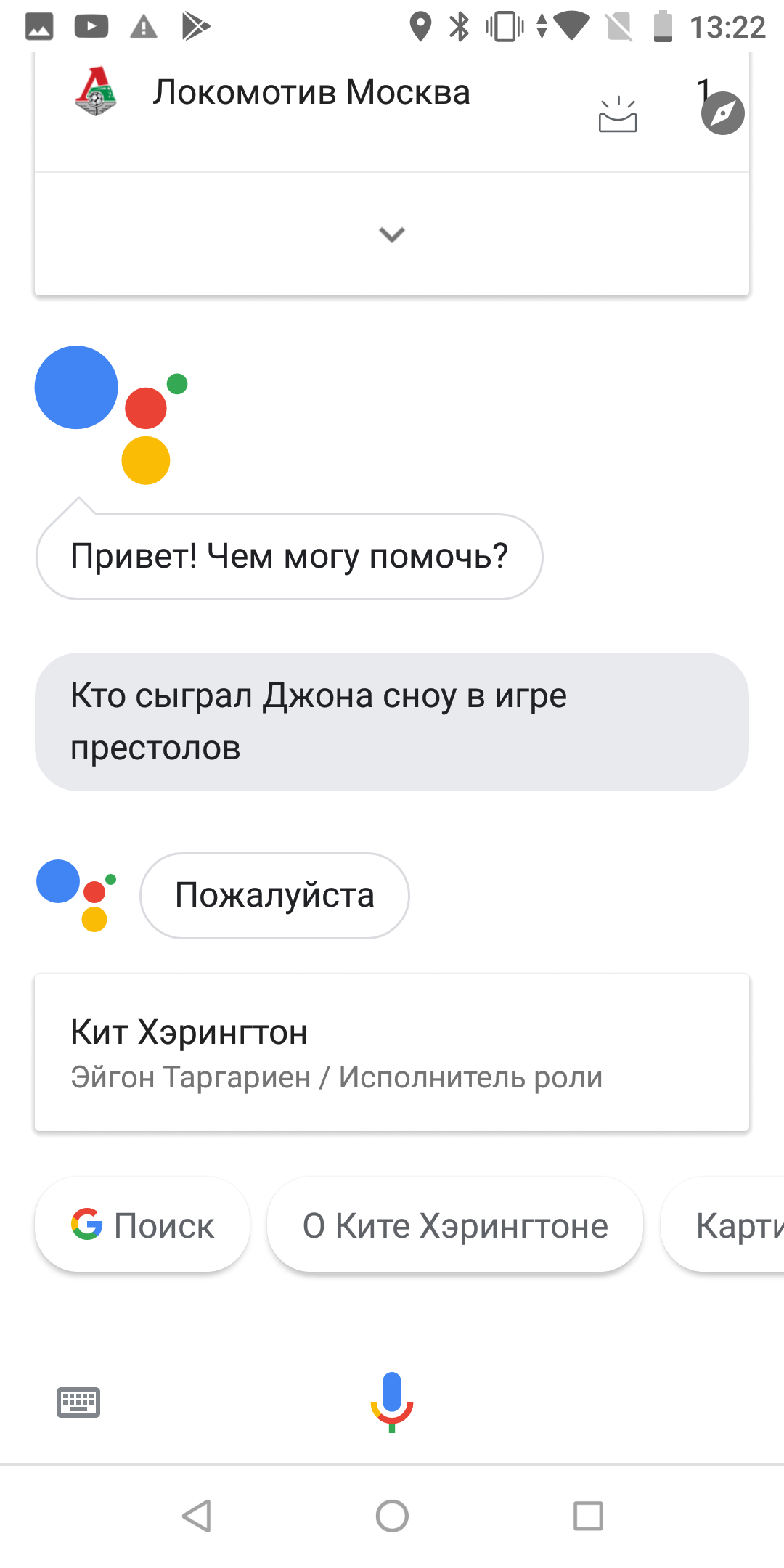Да, Сири действительно открывает App Store, если спросить ее, как сыграл «Локомотив». Алиса то ли отшучивается, то ли думает, что шутим мы. И только Ассистент выдал четкий и точный ответ.