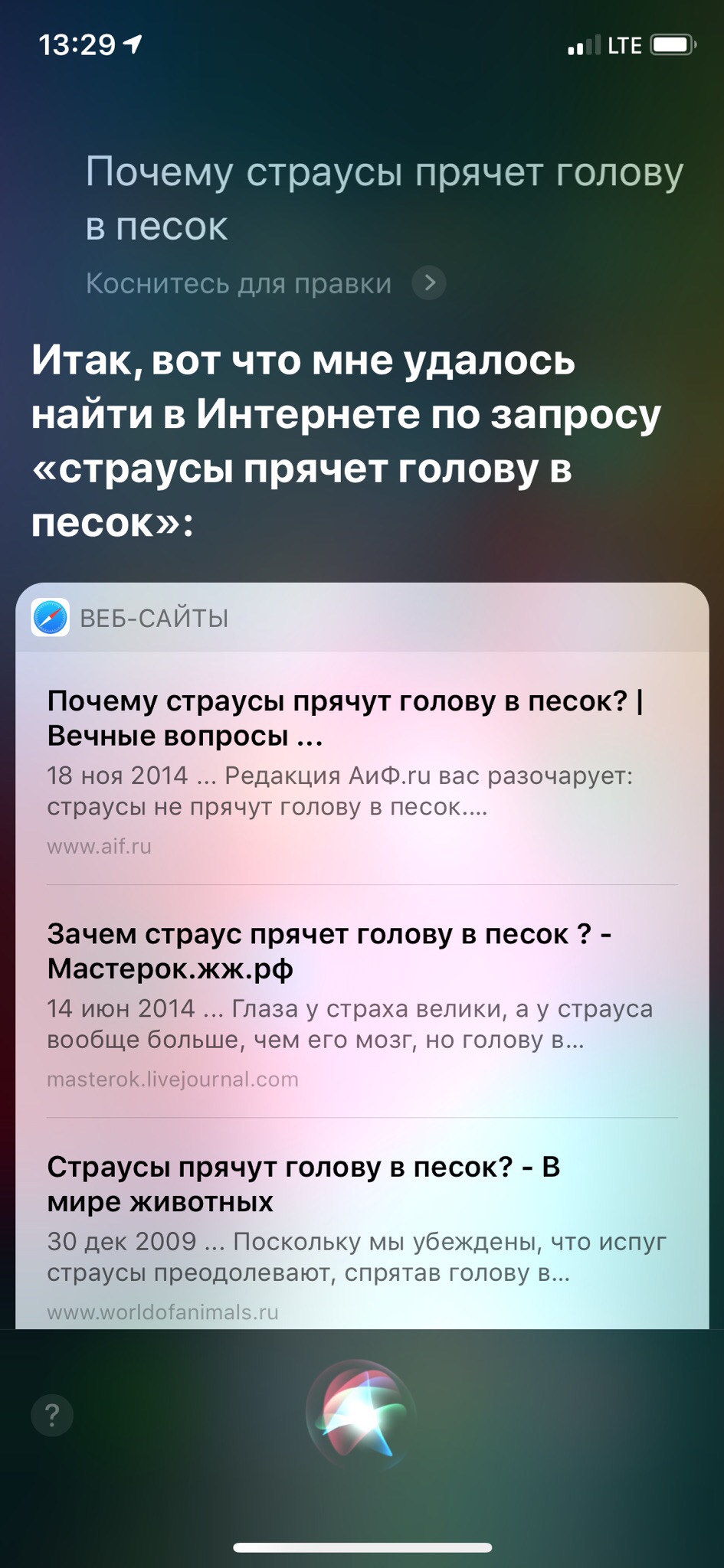 Алиса и Ассистент выдали ответ со ссылкой на источник, Siri не смогла и решила открыть филиал Google.