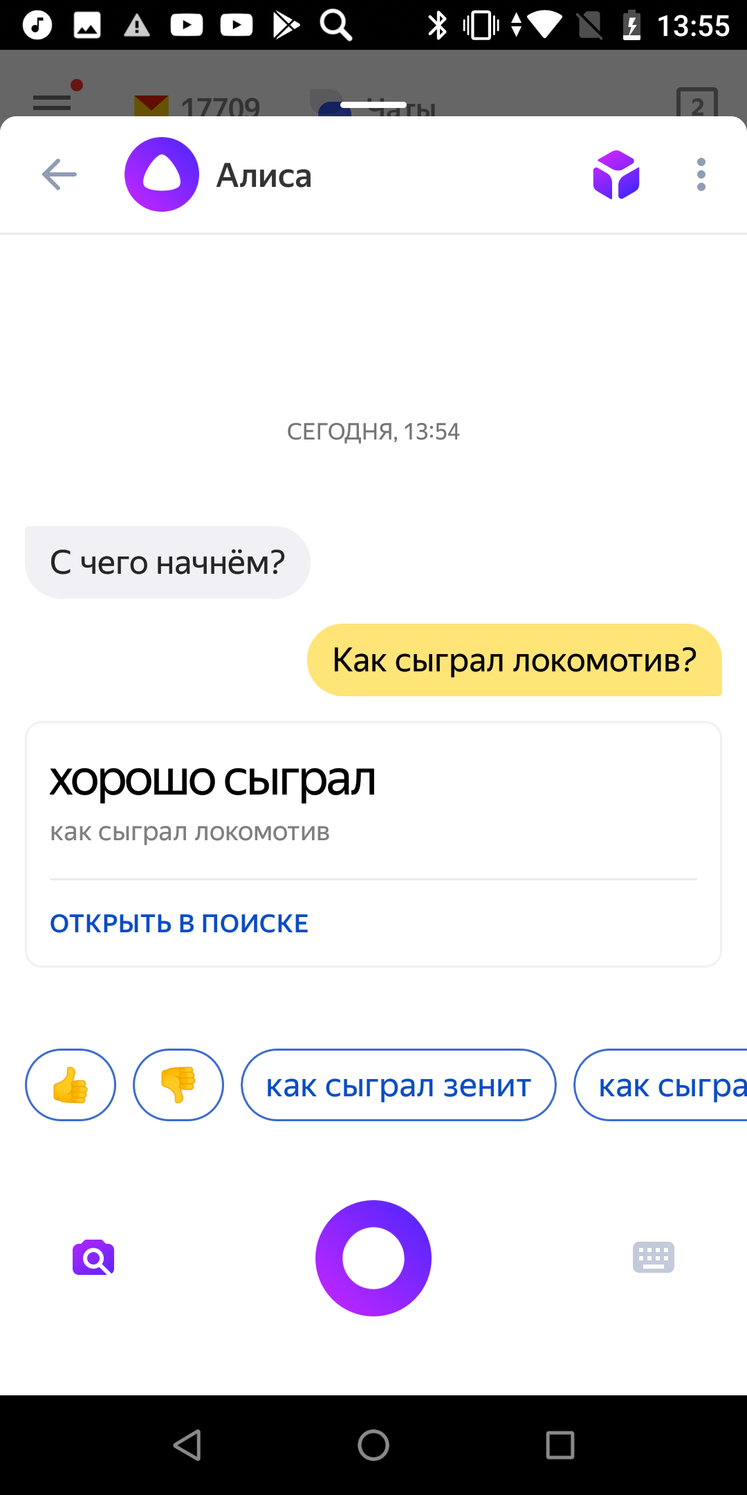 Ассистент снова сразу же открыл на YouTube нужное видео.