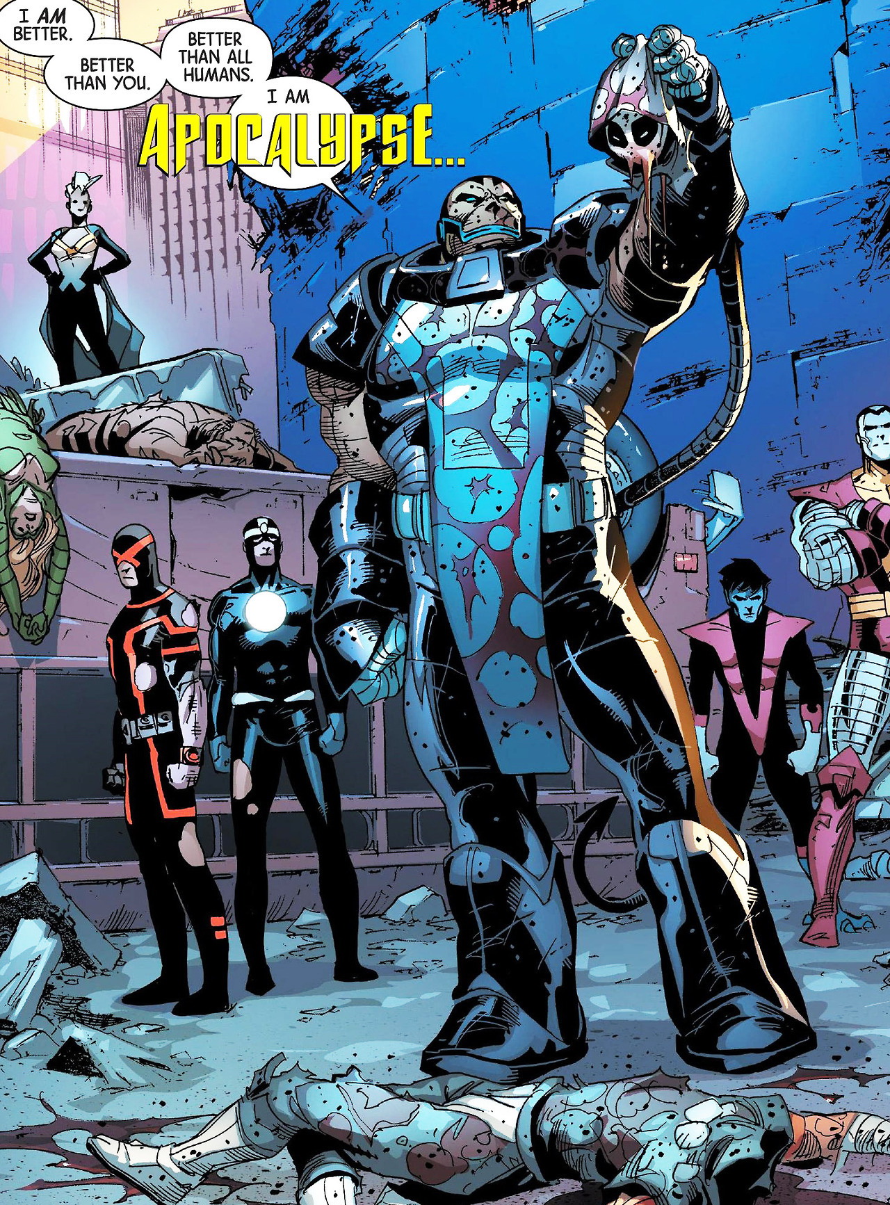В другой истории Апокалипсис решил собрать дюжину топовых мутантов и использовать их силы для того, чтобы стать еще могущественнее. Он чувствовал, что селестиалы скоро явятся за долгом и хотел попытаться дать им отпор. Ничего, как обычно не вышло. Он лишился тела, заполз в голову Циклопа, но Джин Грей вырвала его оттуда и сущность Нура вроде как уничтожили. Но он не помер.