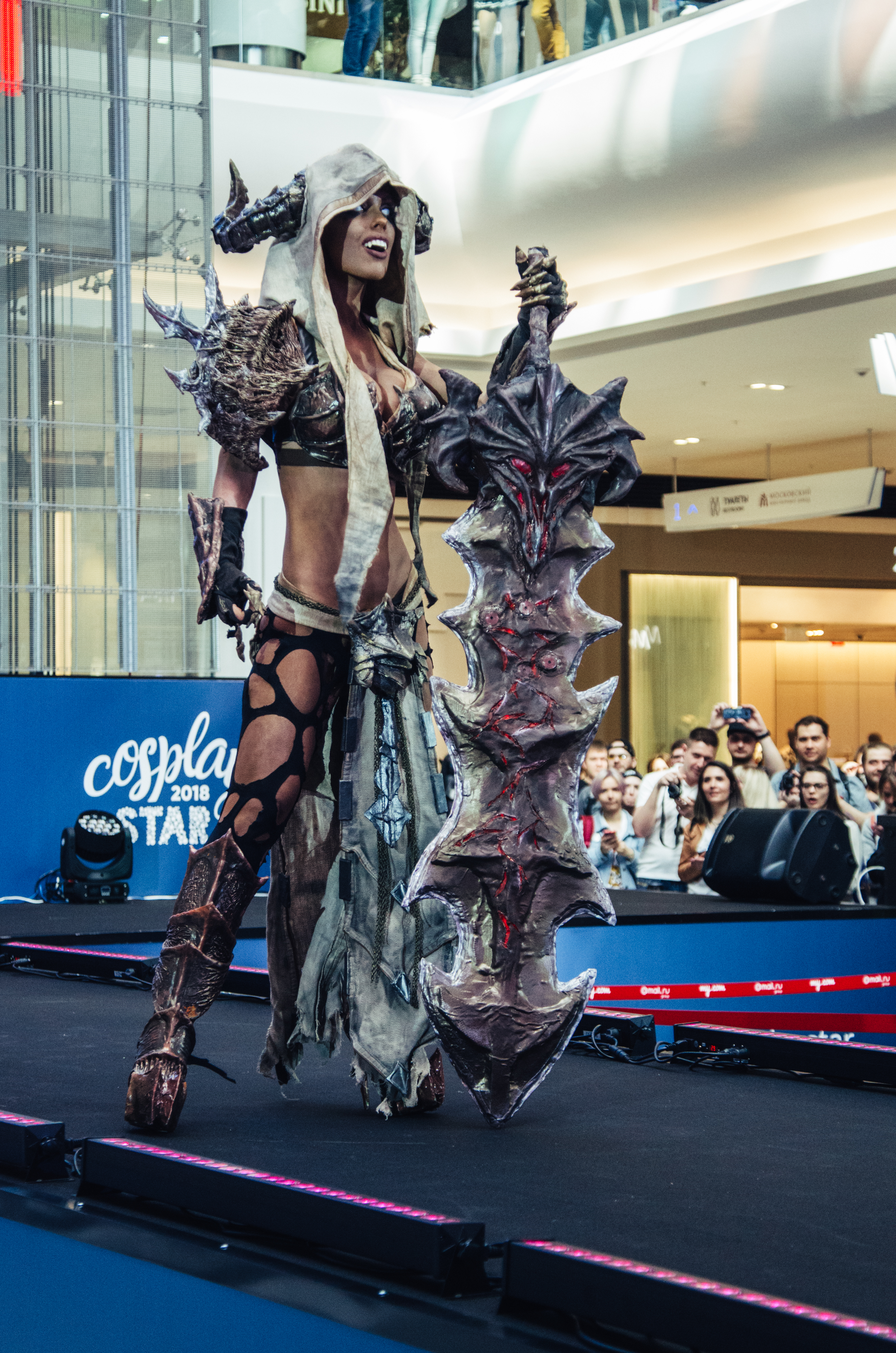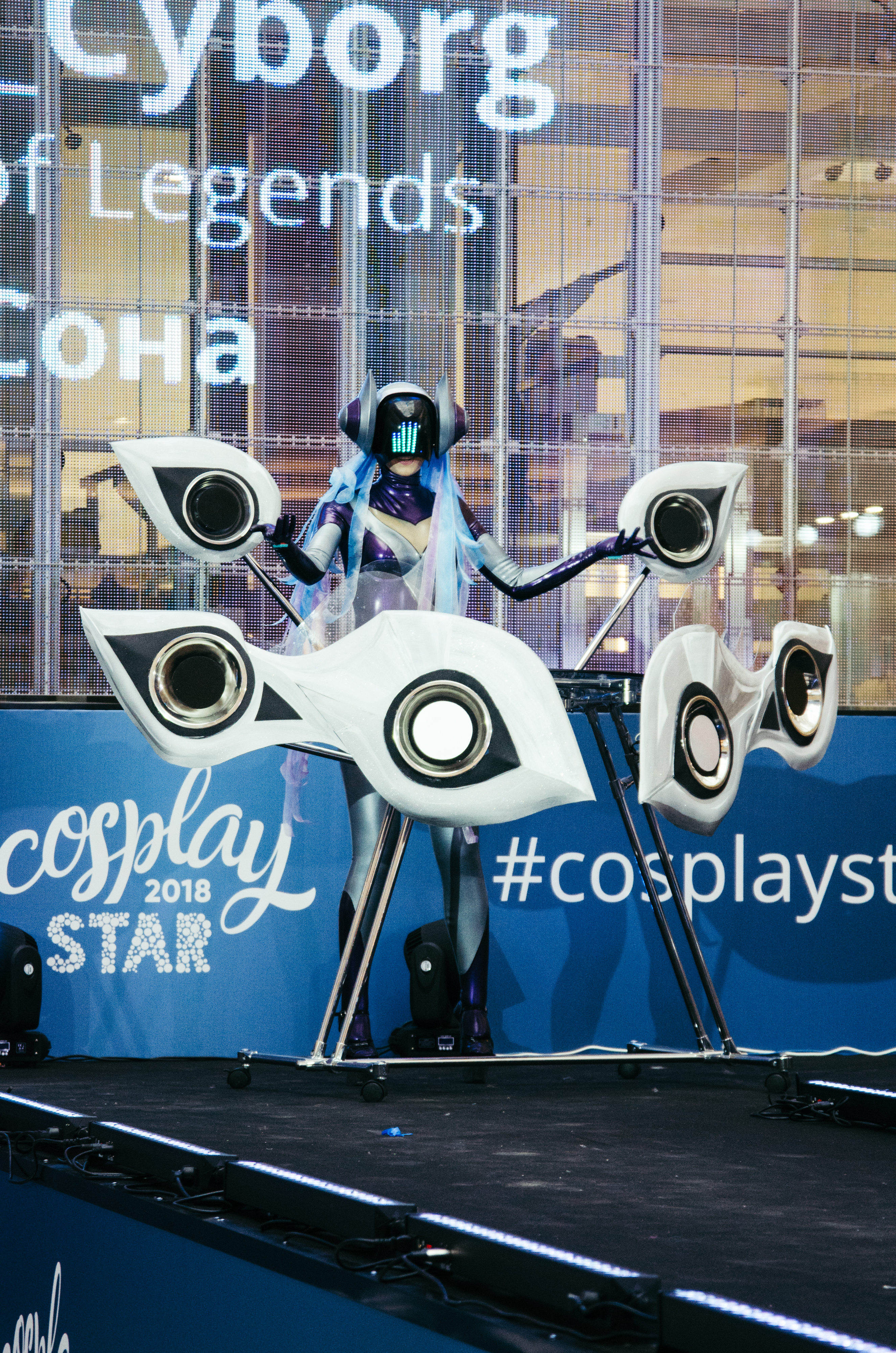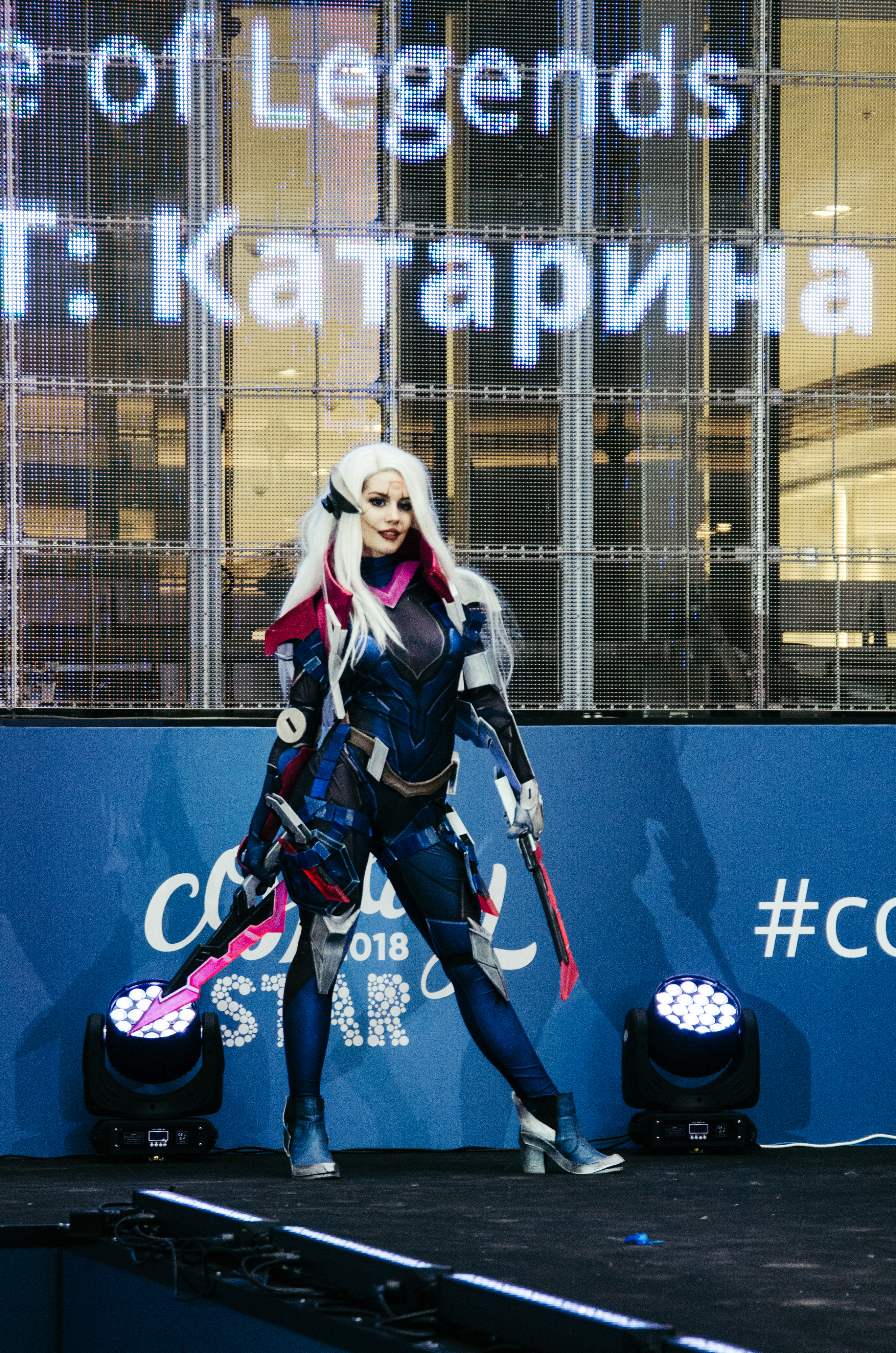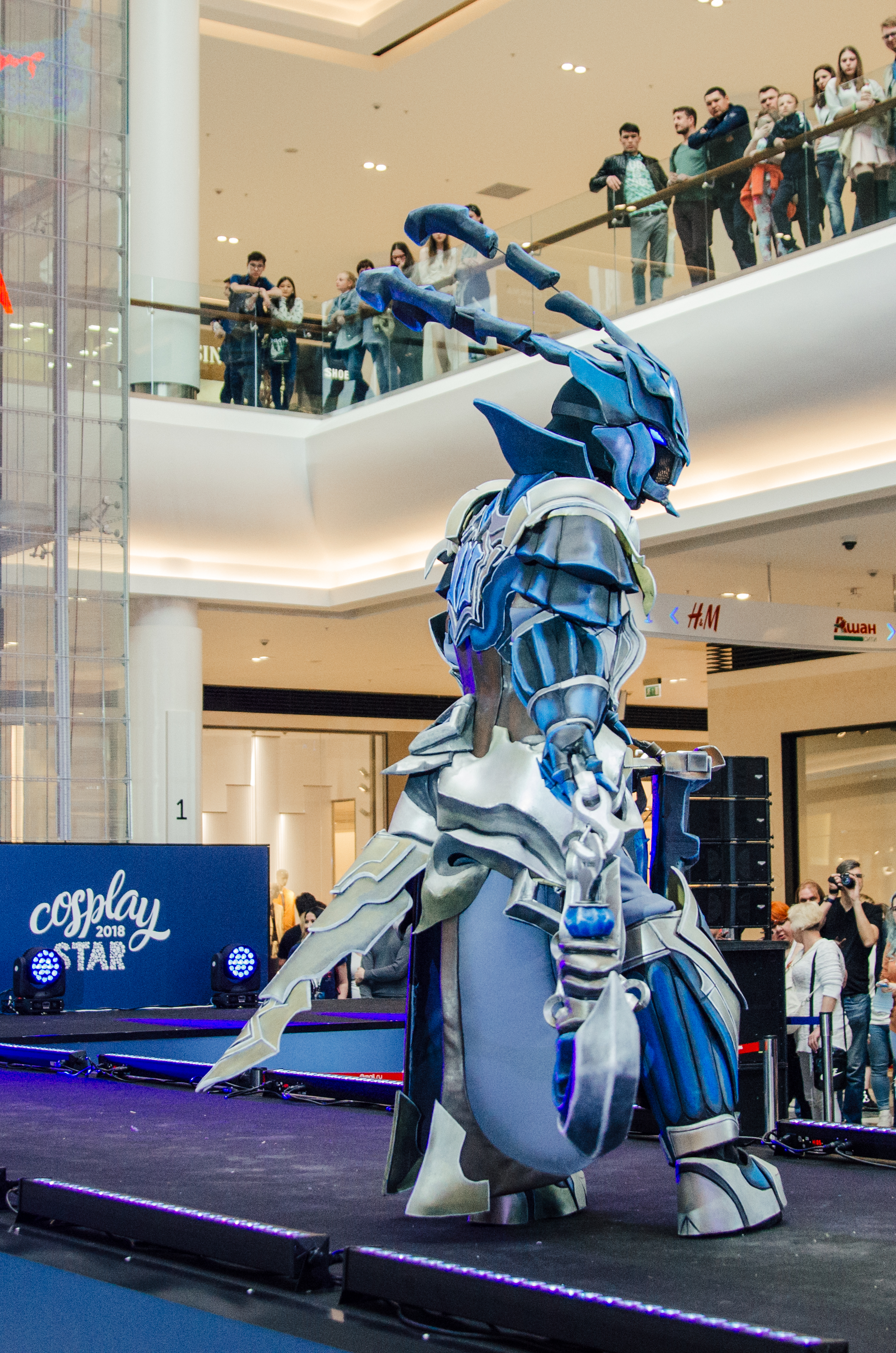 Расположение сцены в торговом центре «Ривьера» было устроено таким образом, что можно было наблюдать за сценой с трех разных этажей, а за сценой была зона, где косплееры готовились к выходу и ожидали подведения итогов. Все желающие могли пообщаться и сфотографироваться с ними. Мне тоже удалось пообщаться с некоторыми косплеерами, с кем мы беседовали в рамках нашего цикла интервью (первая, вторая, третья, четвертая части).