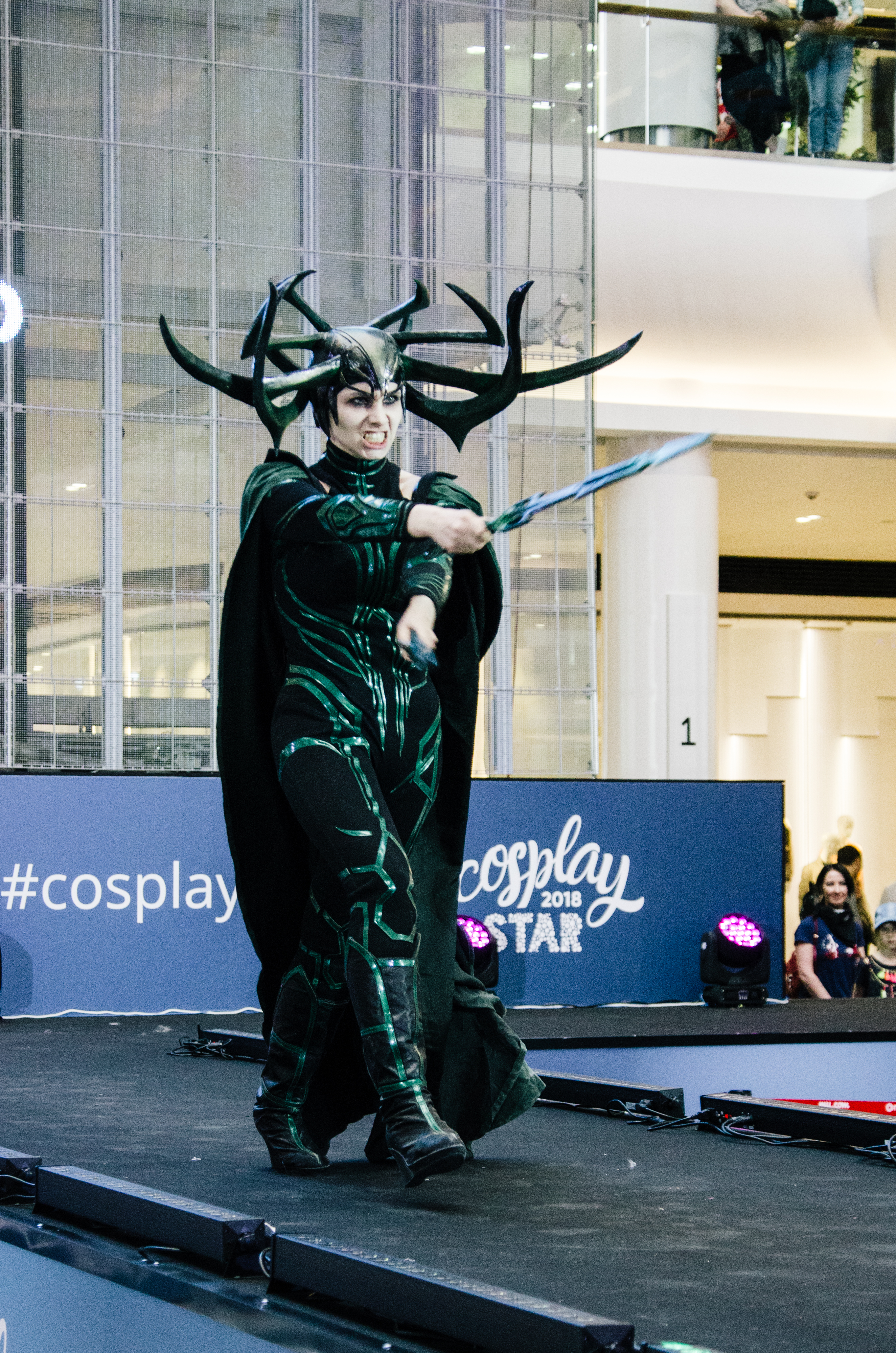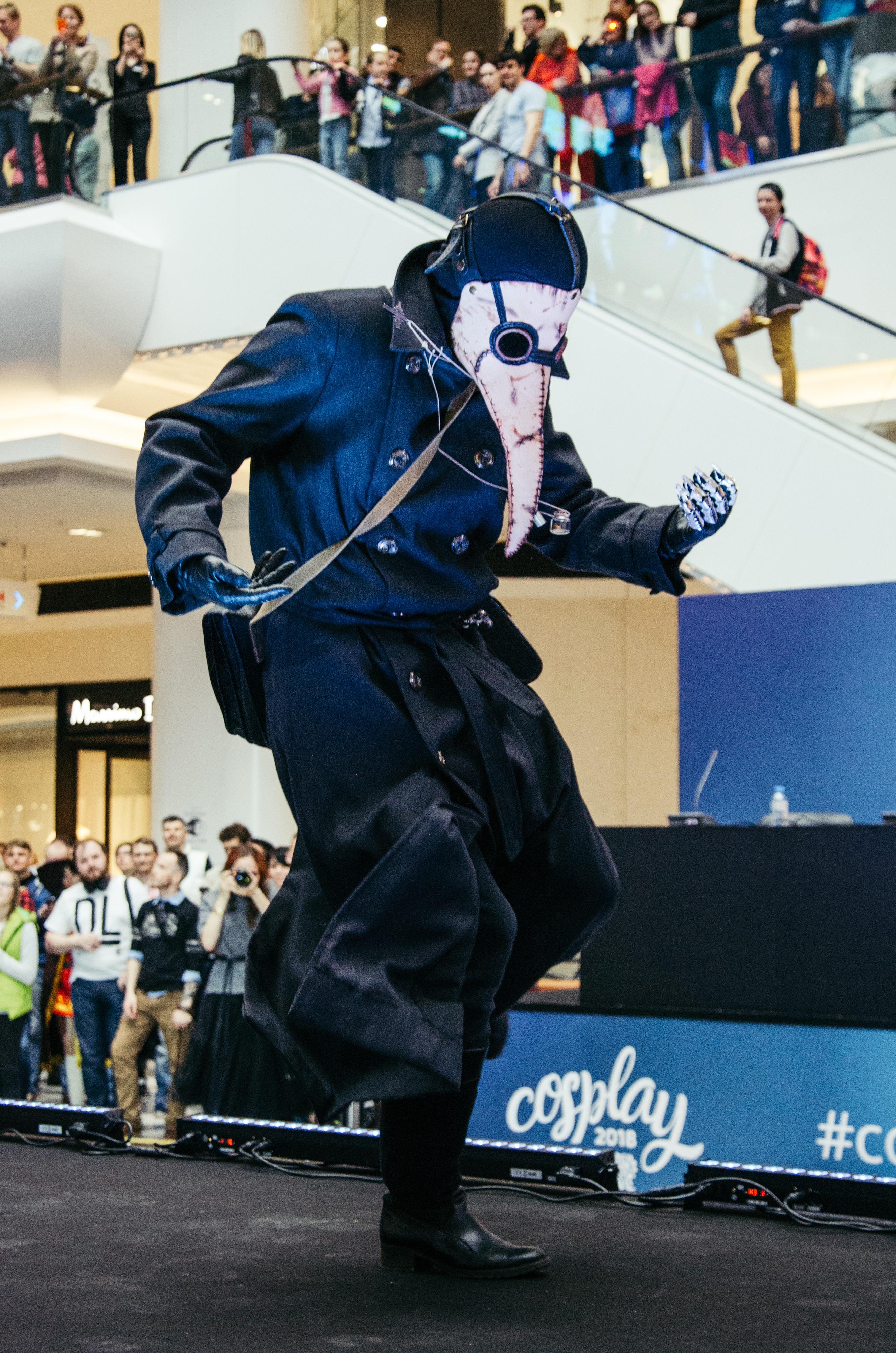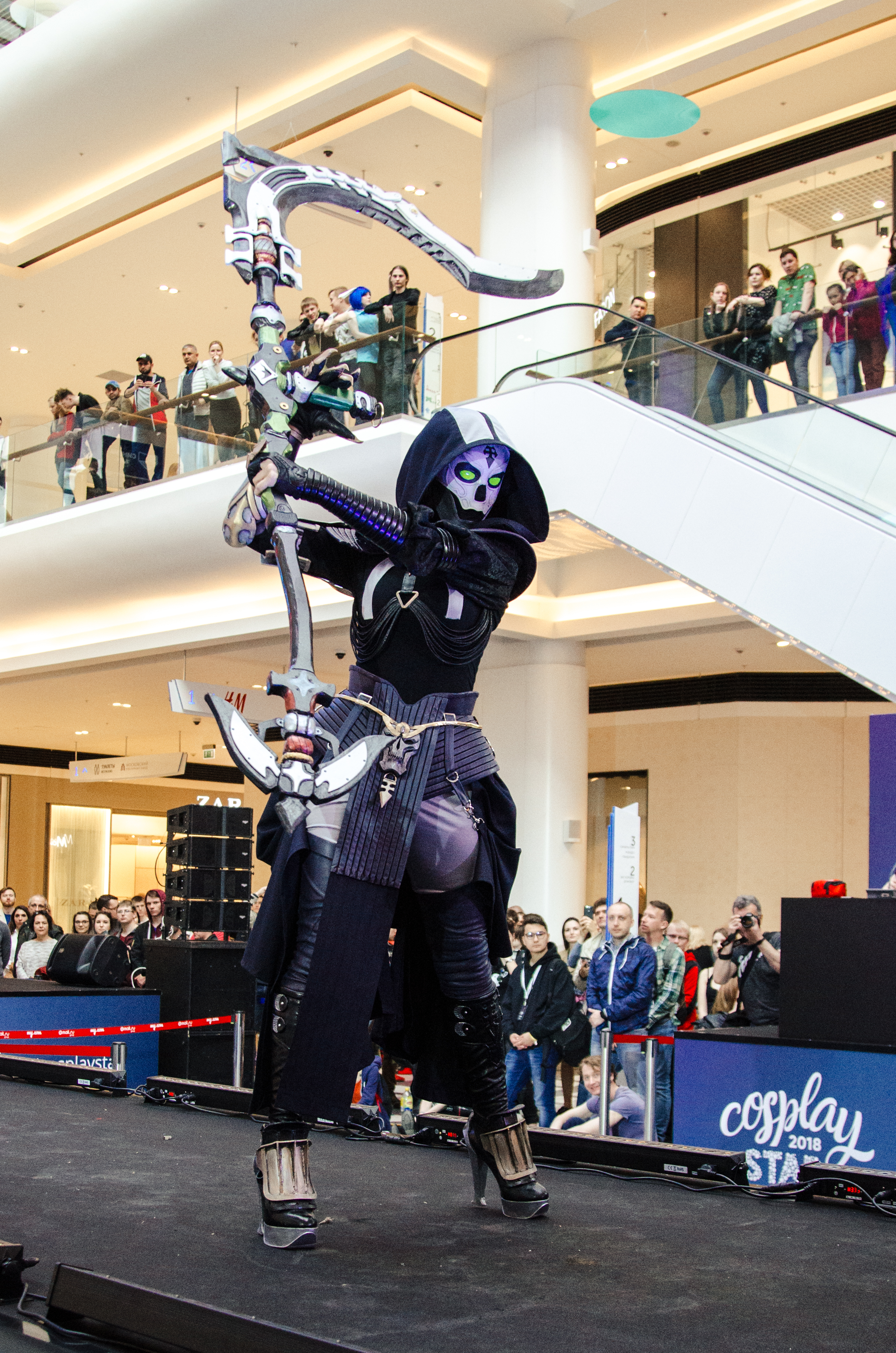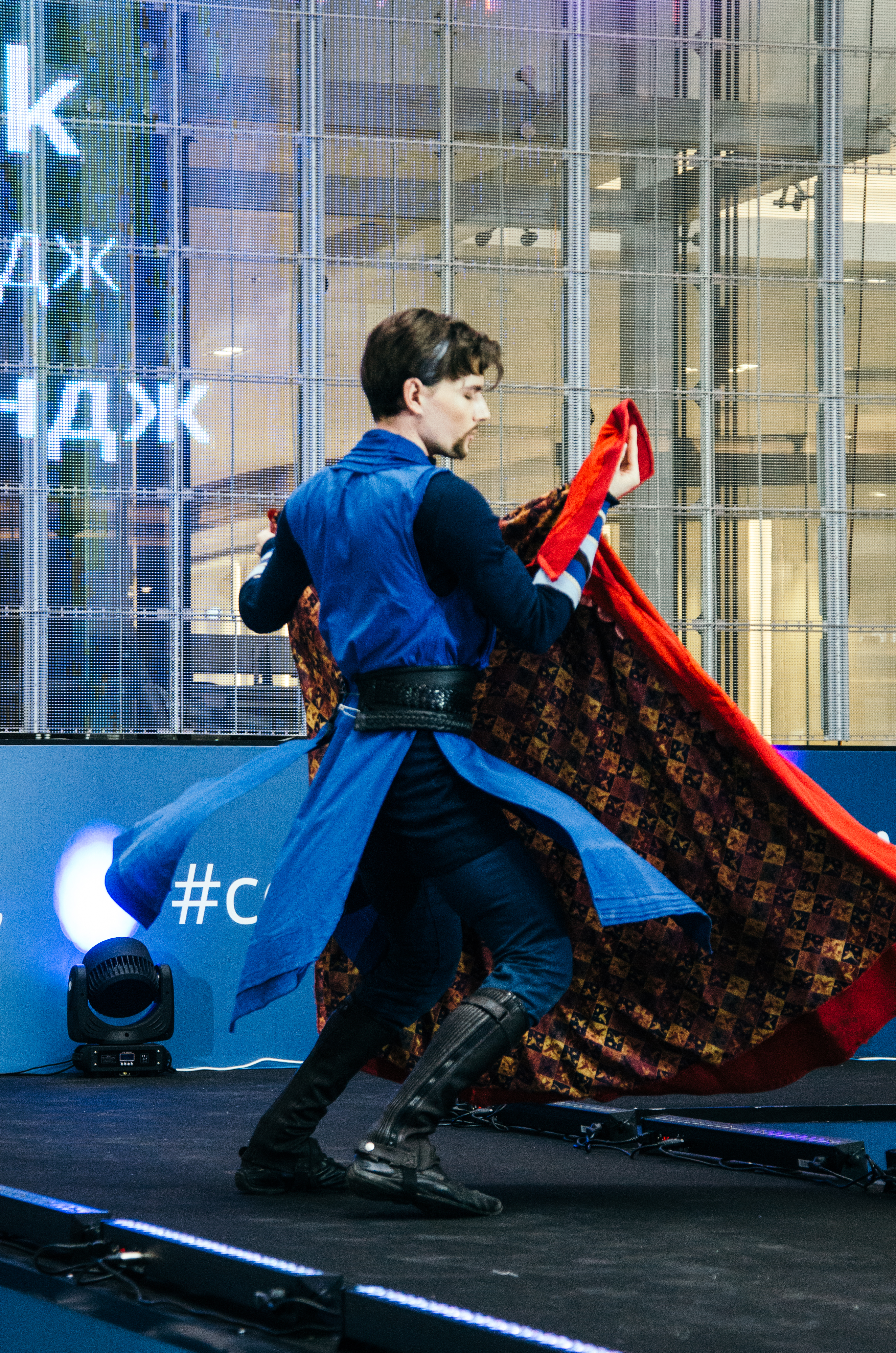 Расположение сцены в торговом центре «Ривьера» было устроено таким образом, что можно было наблюдать за сценой с трех разных этажей, а за сценой была зона, где косплееры готовились к выходу и ожидали подведения итогов. Все желающие могли пообщаться и сфотографироваться с ними. Мне тоже удалось пообщаться с некоторыми косплеерами, с кем мы беседовали в рамках нашего цикла интервью (первая, вторая, третья, четвертая части).