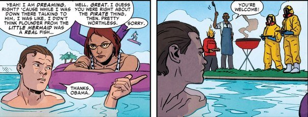 Мы с Ником по всему комиксу разбросали «пасхальные яйца» и отсылки к самым разным вещам, относящимся к реальному миру. Такие штуки делают придуманную вселенную куда более похожей на нашу с вами.