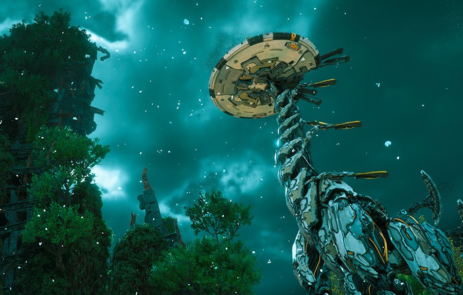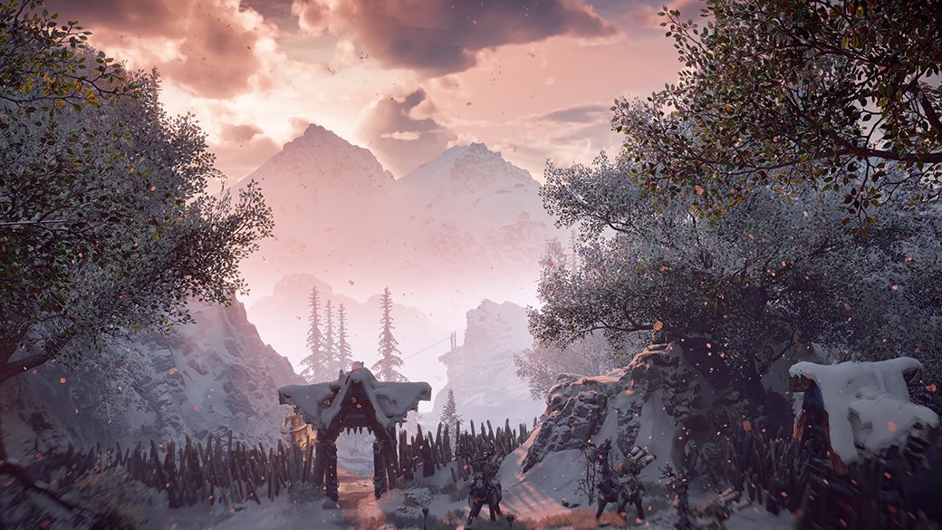 Священные земли — это покрытые хвойными деревьями заснеженные склоны гор, у подножья которых раскинулась живописная цветущая долина. Места безумно красивые, но смертельно опасные — почти все виды самых агрессивных машин обитают здесь. Сдерживает их племя Нора, населяющее долину уже много веков. Именно из этого племени родом главная героиня Horizon — Элой. Ну а на севере Священных земель можно встретить немногочисленных представителей племени Банук, особенно плотно связавших свой быт с машинами.