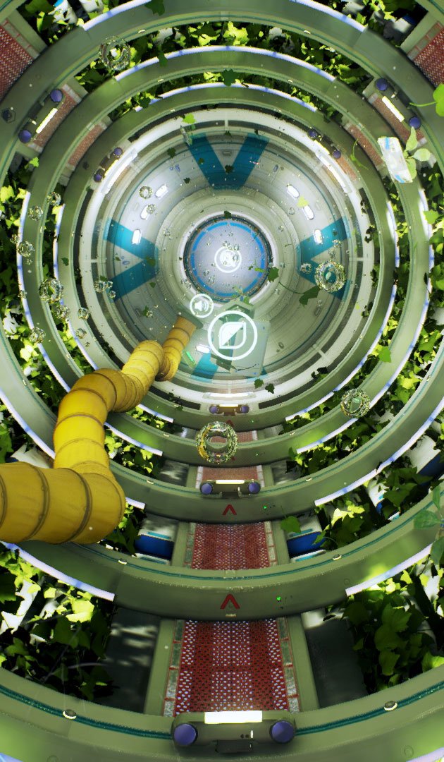 Наш костюм поврежден, когда вы находитесь вдали от станции и без поддержки систем, из него постоянно вытекает кислород, который к тому же тратится на перемещение. Из-за этого все ваши движения начинают выглядеть как короткие перебежки от одного ящика с баллонами к другому, таким образом игра помогает не потеряться, а это тут сделать крайне легко, размер станции огромен и, теоретически, вы можете в любой момент подлететь к каждой из секций станции и найти там вход, отчего весь этот объем и колоссальные разрушения начинают морально давить.