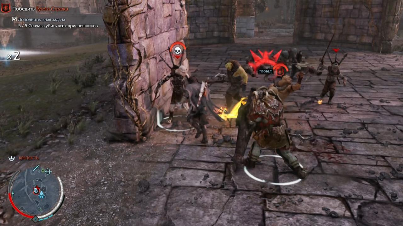 И вот тут у Middle-earth: Shadow of Mordor начинаются проблемы. Бои в игре построены по ритмичной схеме «ударил-парировал-добил-оглушил-ударил» (фанаты Бэтмена от Rocksteady Studios — это ваша тема, только вместо банального отправления в нокаут вы сможете отрывать головы и рубить орков мечом!). Постепенно герой открывает новые приемы, которые после пяти-семи часов неспешной игры превращают его в настоящего мясника. А капитаны просто не успеют за это время так раскачаться, чтобы давать отпор. И вот уже на место тактики приходит обычное избиение разбегающихся в ужасе орков. Талион вдруг становится главным гопником всего Мордора, одного появления которого на местной школьной дискотеке хватает для инфаркта у физрука.